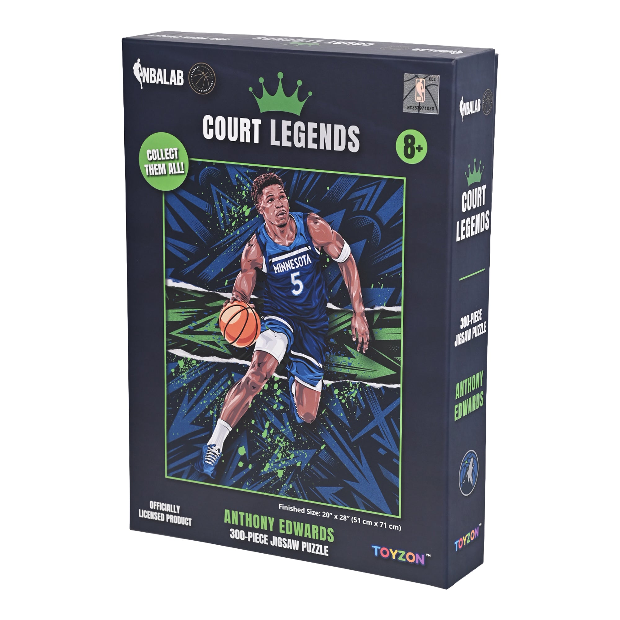 Bring the explosive energy of Anthony Edwards to life with this officially licensed Court Legends 300-piece jigsaw puzzle. Featuring bold, dynamic artwork inspired by Edwards’ electric playing style, this puzzle captures one of the NBA’s brightest stars in action. Designed for fans and collectors alike, the completed puzzle reveals a striking illustration that celebrates Edwards’ rising legacy on the court.